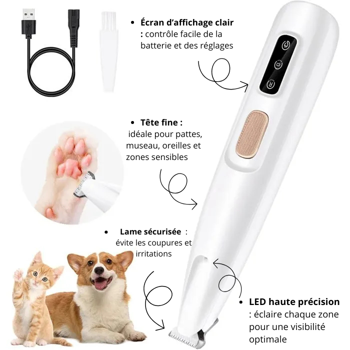 Precision Trimmer for Dog and Cat Paws – Silent with LED Light
